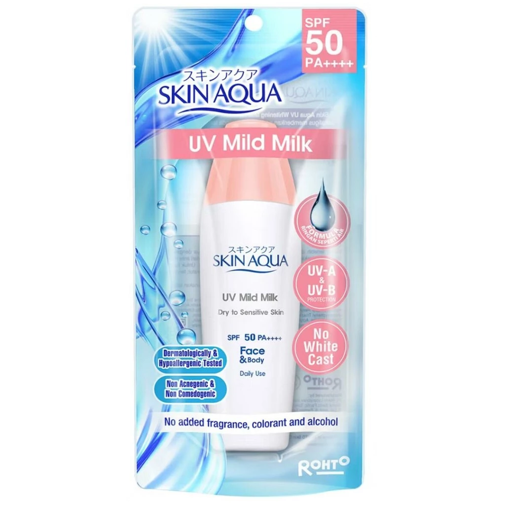 Terakhir, ada Skin Aqua UV Sunscreen Mild Milk SPF 50 PA++++ yang terkenal dengan teksturnya yang ringan seperti susu.